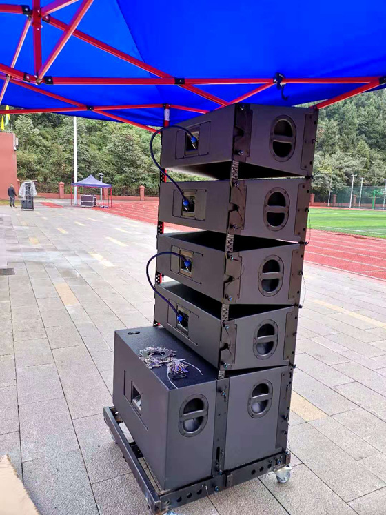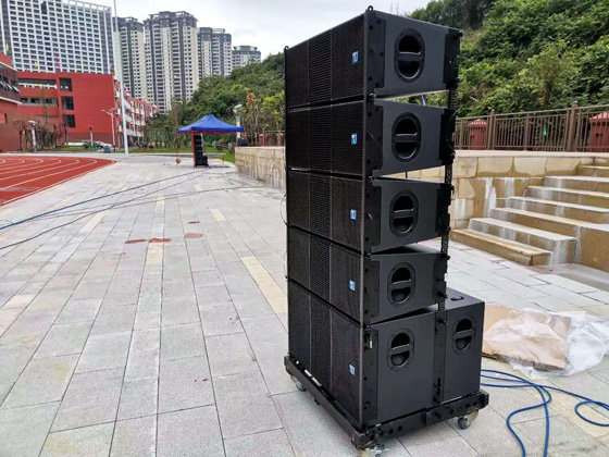 遵義學校室外演出音響,采用FDB品牌專業設備,專業4+1線陣,配備舒爾話筒,AKG合唱話筒等