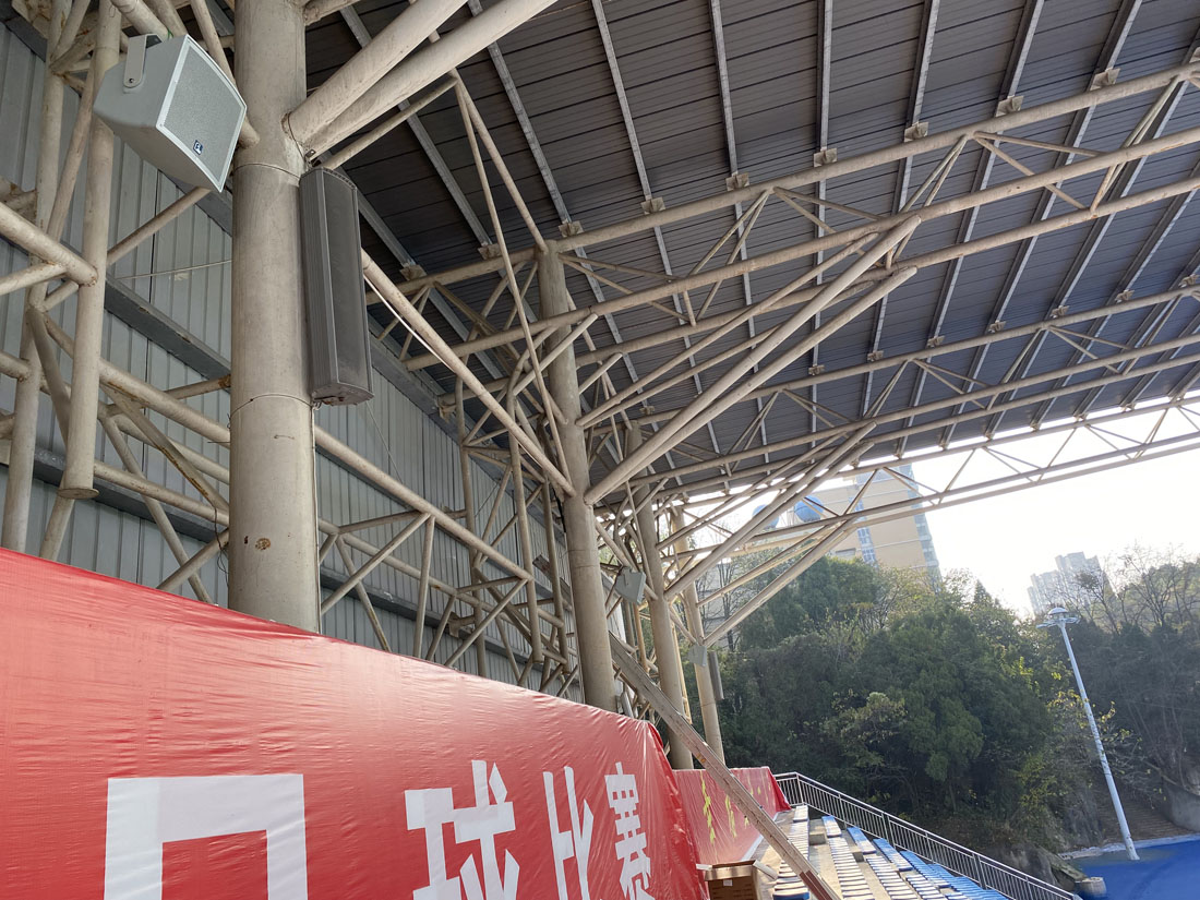 安順學院運動場音響采用全天候遠程全頻號角音響,此午夜成人福利在线观看特點為聲音傳送距離遠,防水,全頻午夜成人福利在线观看音質好,聲壓大體積小。話筒采用真分集話筒信號遠且穩定。音頻處理器保證音質預防過載燒毀設備。