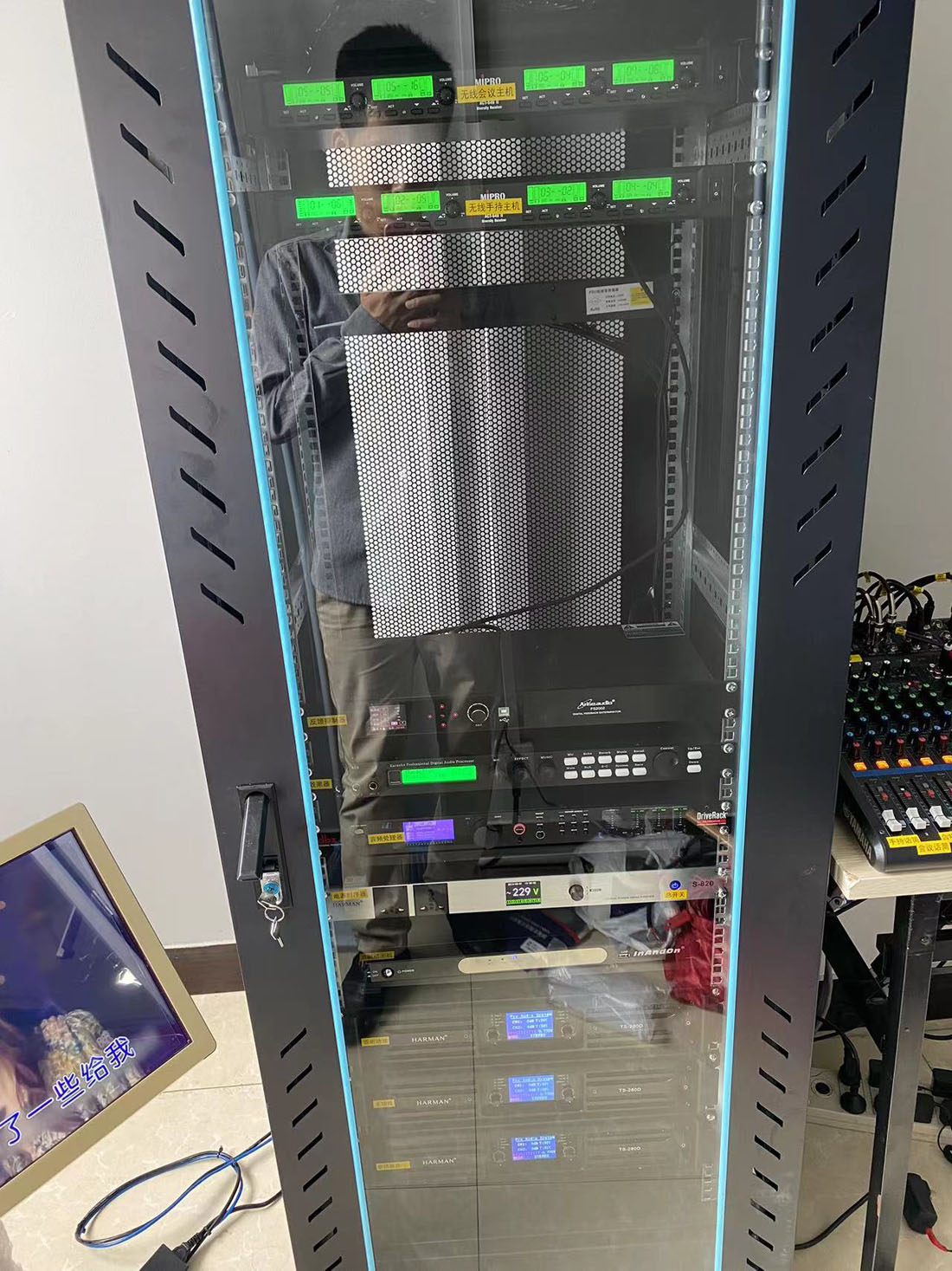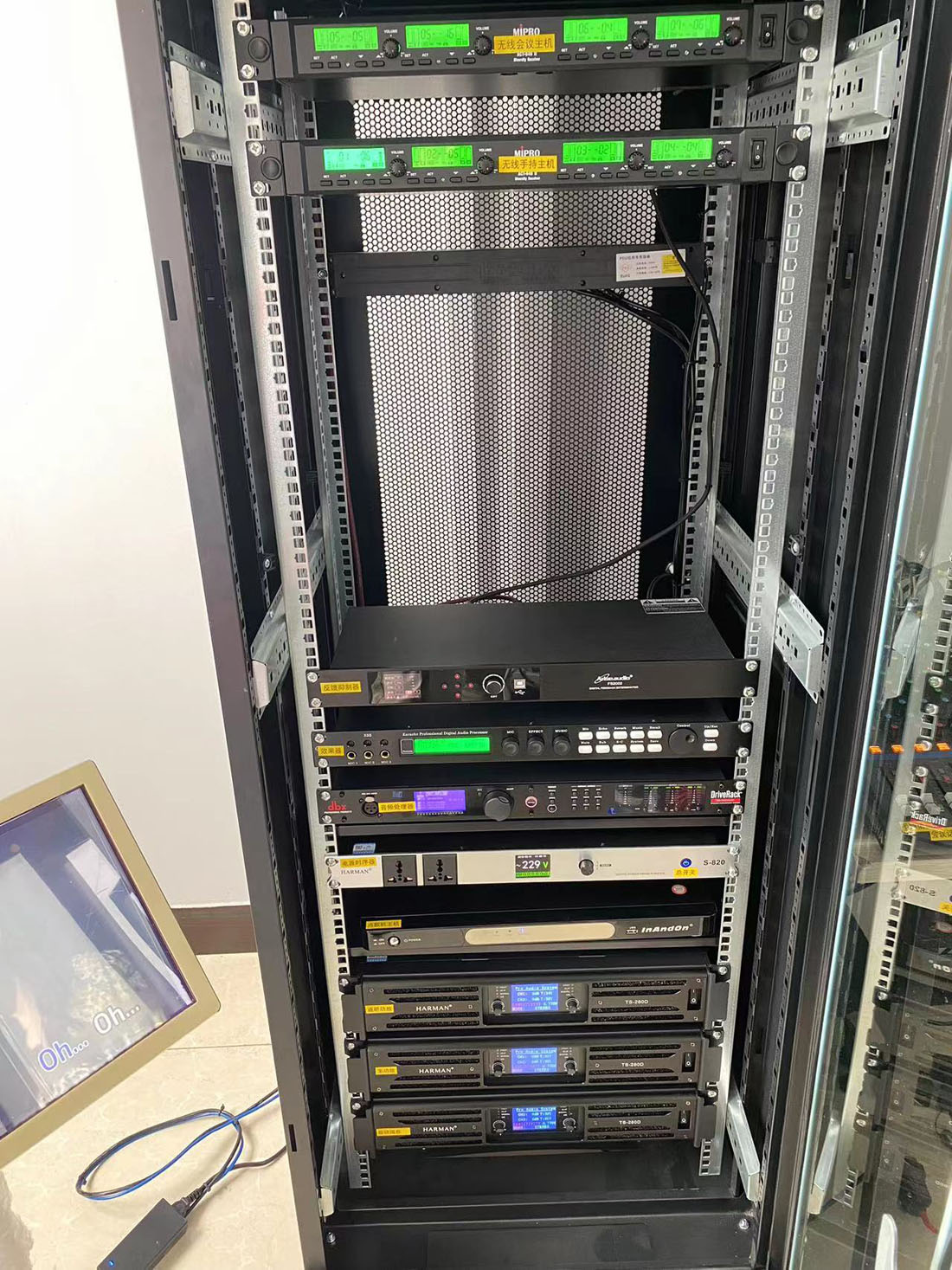 貴陽國企多功能廳音響燈光,采用HARMAN午夜成人福利在线观看,咪寶話筒,雅馬哈調音台,DBX處理器,及專業燈光。會議及文藝活動兼顧,聲音宏亮,不嘯叫。高中低音層次分明效果好。